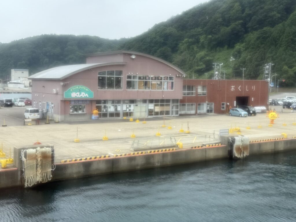 11:50 奥尻島到着 曇り空、時折霧雨が降っていました。