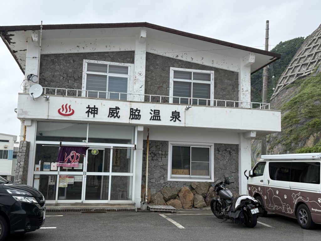 今日は奥尻島唯一の日帰り入浴温泉「神威脇温泉」で汗を流し、貸し切り状態の賽の河原公園キャンプ場でゆっくり車中泊