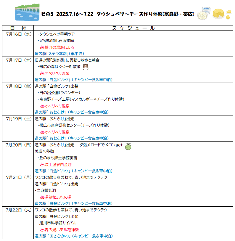 7月18日(金) 道の駅白金ビルケ~富良野~道の駅おとふけ