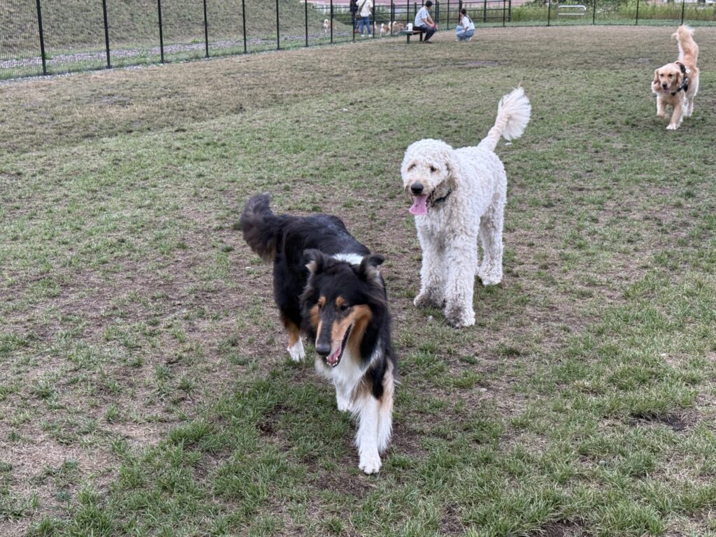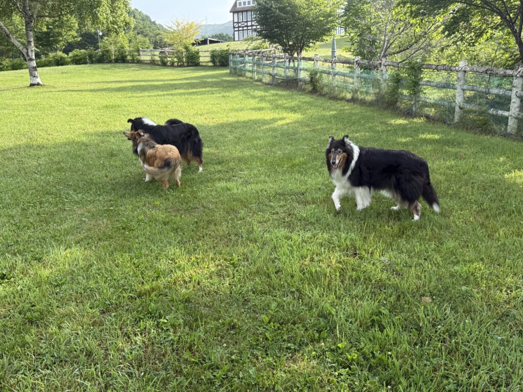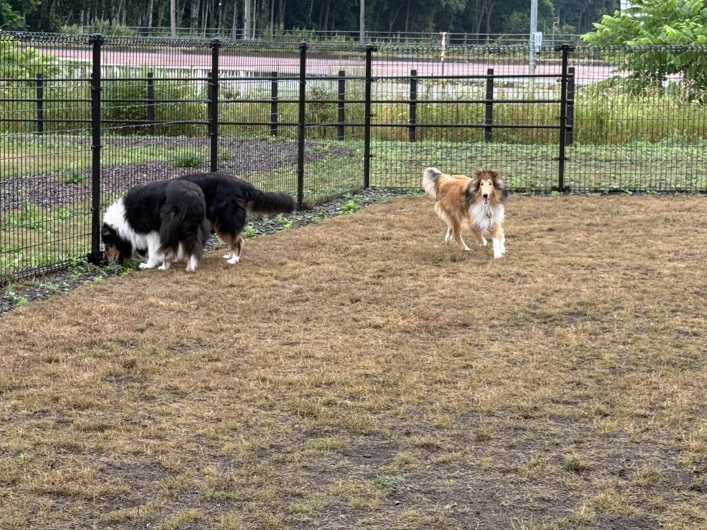 広いドッグランで今朝も思いっきり走れて満足