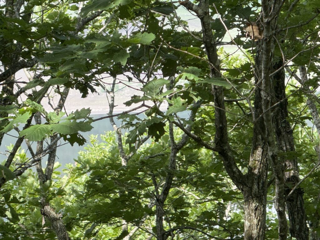 朝食の後9:30過ぎに出発 せっかくだから足寄湖が見えないかと高台に上がってみると、木立の合間から何とか足寄湖を見る事が出来ました。