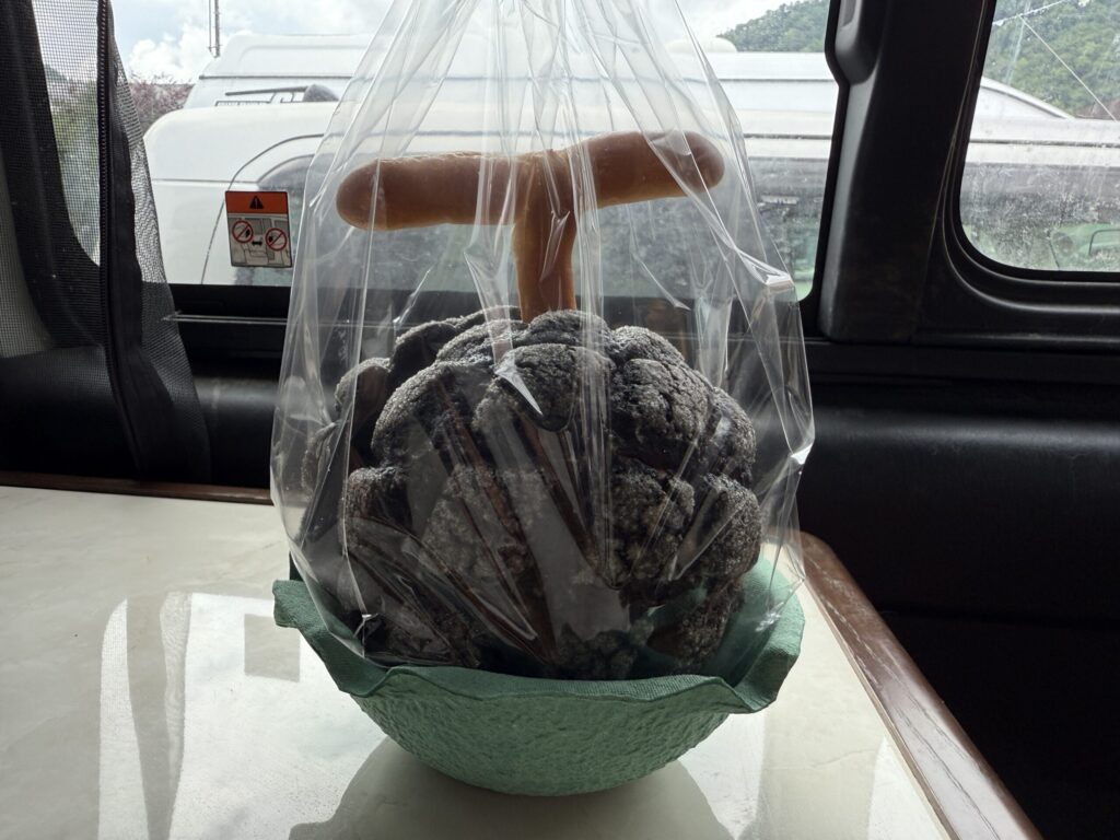 すっかり忘れていましたが本日は日曜日!! 週末限定のメロンパンが販売されていました。昨年購入したから今年はいいかなと思っていたら、バージョンupされていて、種類が増えていました。これは買わねばと、今年は黒メロンパンを購入。