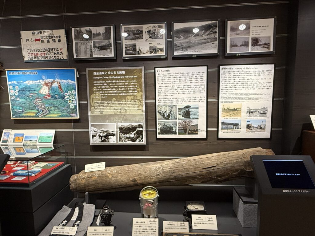 館内では、十勝岳をはじめとした大地のなりたちや自然の雄大さをジオパークを通して学ぶことができ、先人の努力によって発展した現在の美瑛町の姿を映像や床地図で視覚的に認識できます。そのほか、歴史の歩みに手で触れ、耳で聞き、目で見ることができる展示物が充実しています。また、口径40cm反射望遠鏡(愛称:ぴかり)が設置された美宙天文台が併設されており、1等級以上の明るい星を日中でも見ることができます。