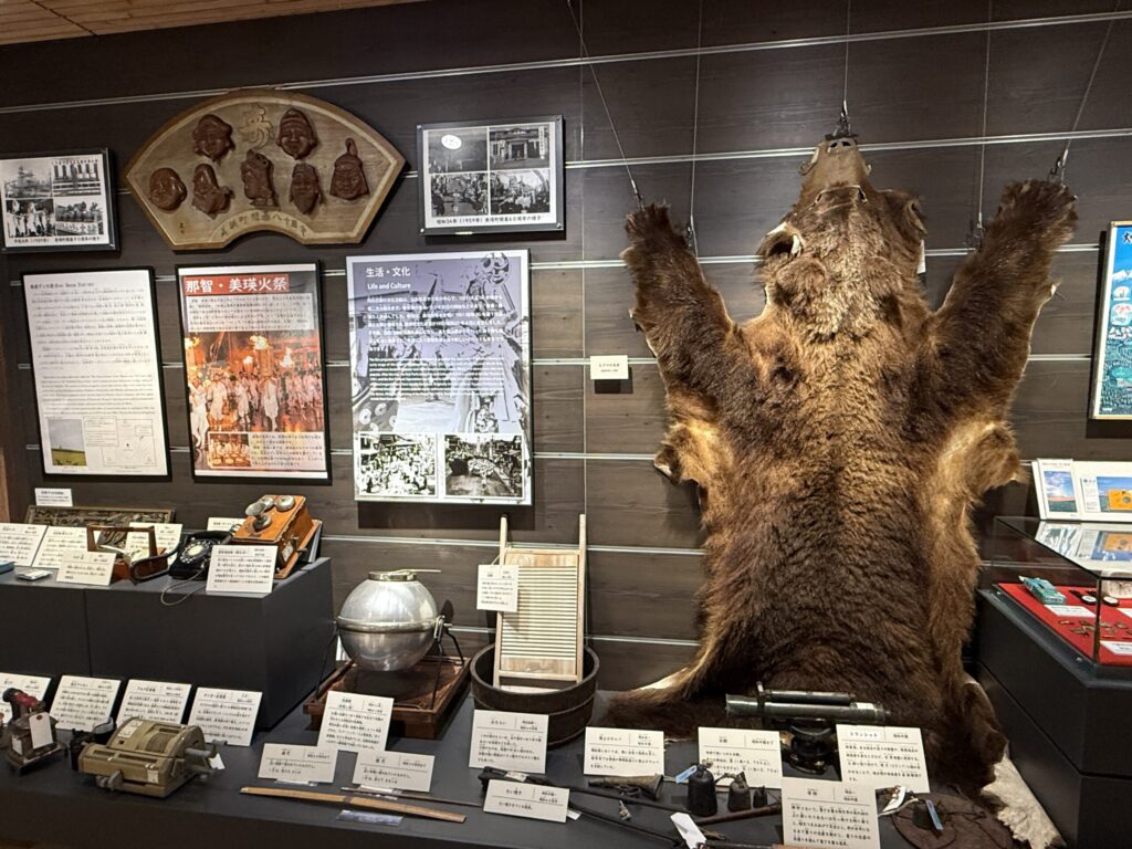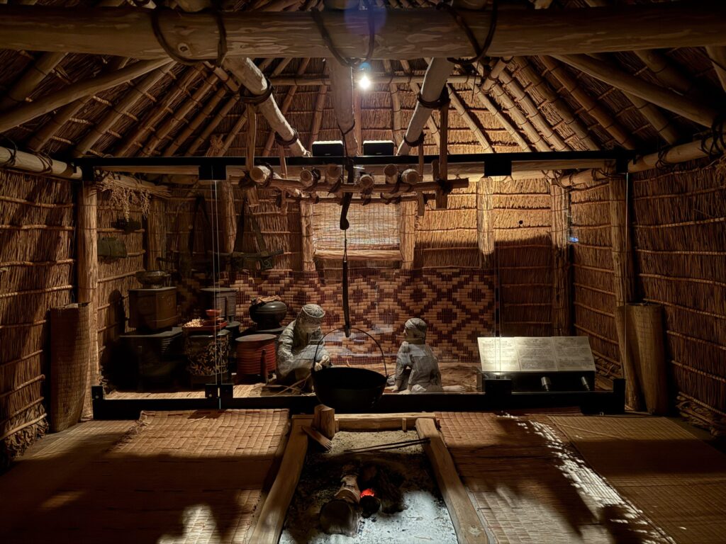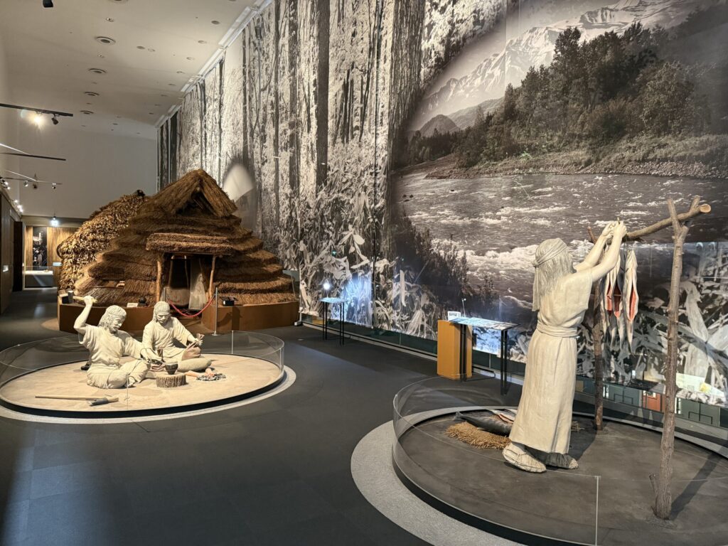 1階展示室では「先住の民アイヌの歴史と文化」、地下1階では「厳寒を生き抜く動植物と人」について、多くのアイヌ関連資料と多彩な資料を展示し、わかりやすく解説しています。復元したアイヌの伝統的な住居や屯田兵の住居などもあり、当時の人々の生活の一端を知ることができます。