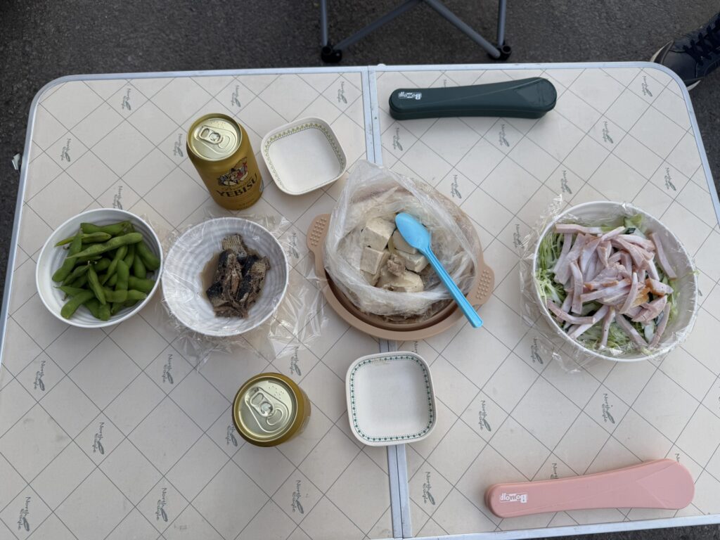 道の駅とは道路を挟んだ反対側にある「国土交通省 中山除雪ステーション」の駐車場に移動ドッグランでワンコのお散歩を済ませ、車中食で乾杯🍻