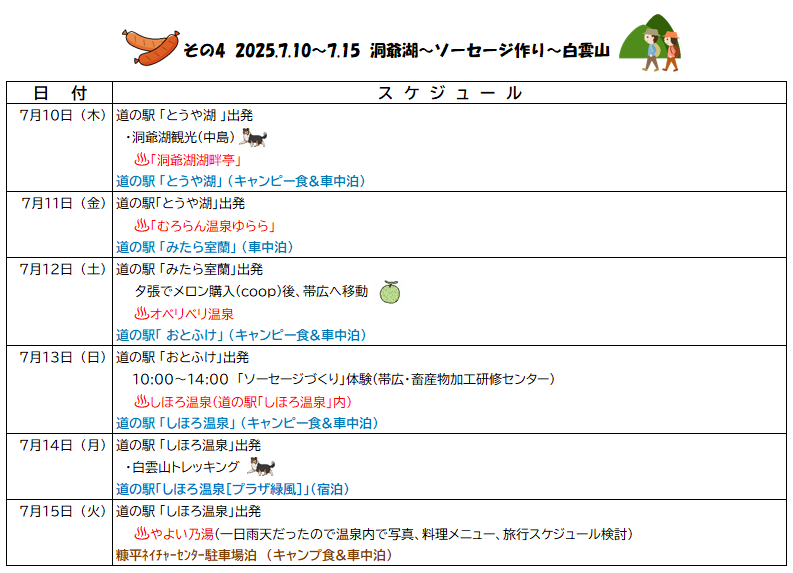 7月13日(日) ソーセージづくり(帯広)~道の駅しほろ温泉