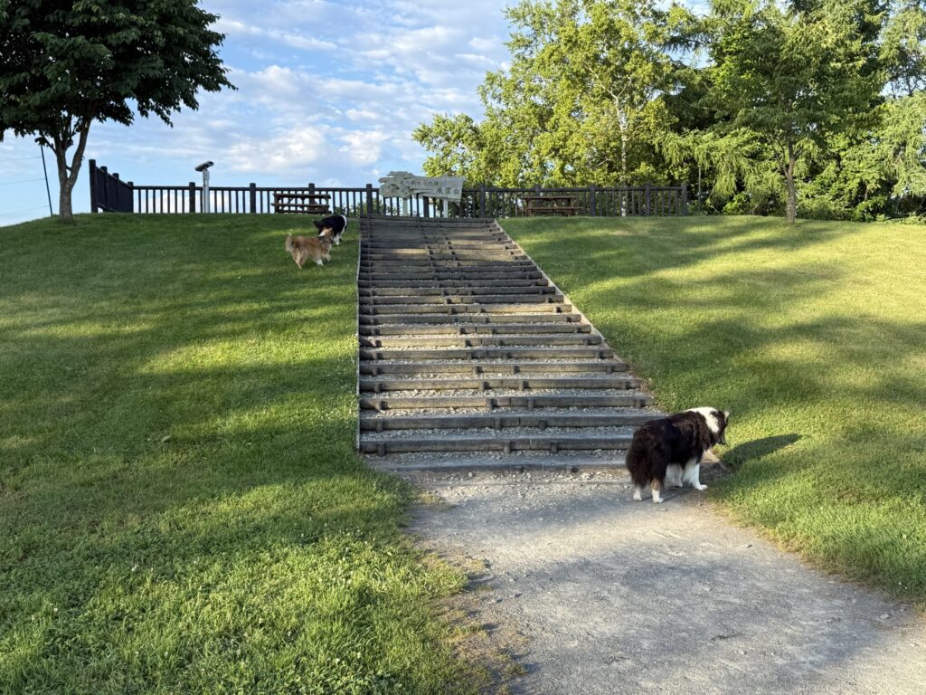 5:25、道の駅の展望台周りで朝のお散歩。