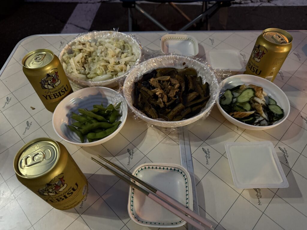 散歩後は道の駅で入浴&キャンプ食。