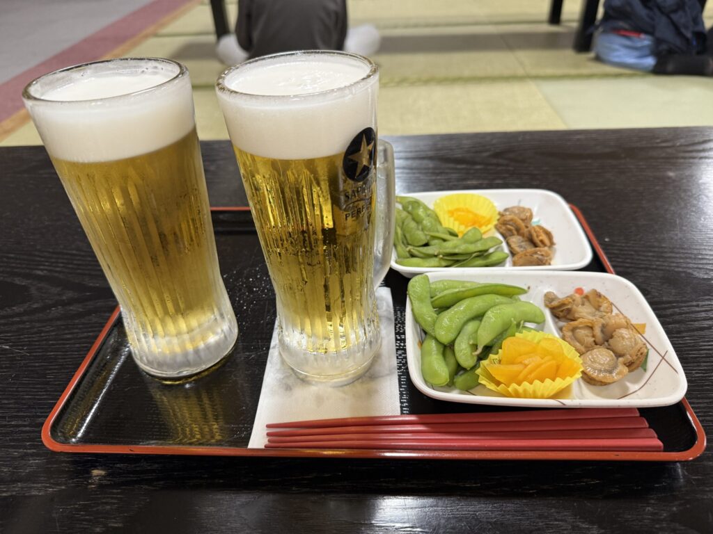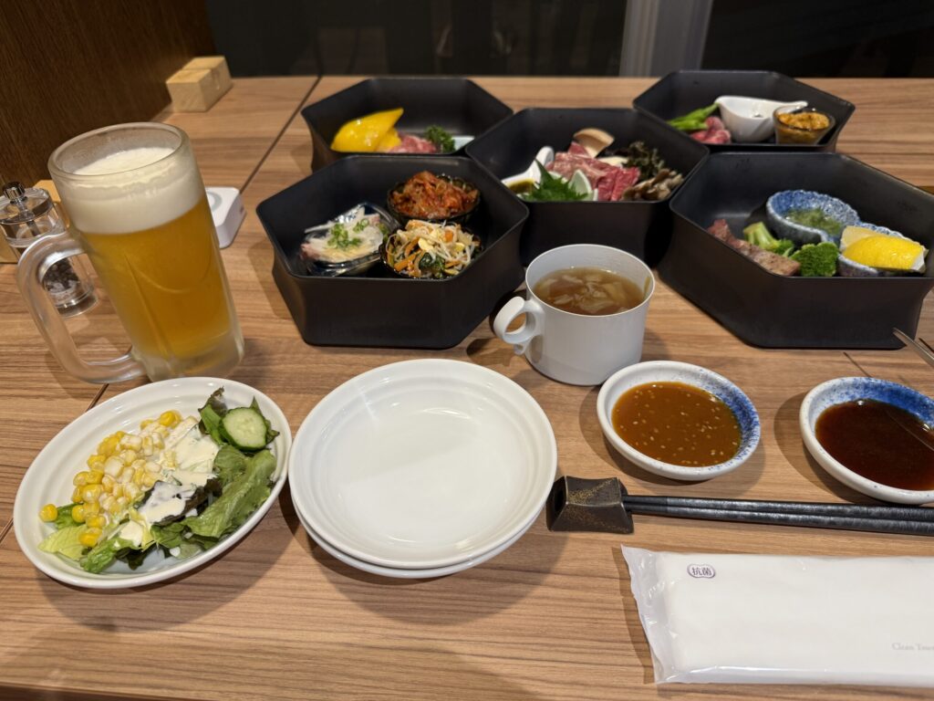 この後はこの日の宿泊地「しほろ温泉プラザ緑風」に早めに入り、トレッキングの疲れを癒すことに(昨日は車中泊でしたが、この日は道の駅の宿泊施設「プラザ緑風」への宿泊)。夕方のお散歩を済ませた後、しほろ牛メインの夕食を堪能しました。