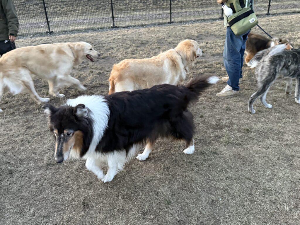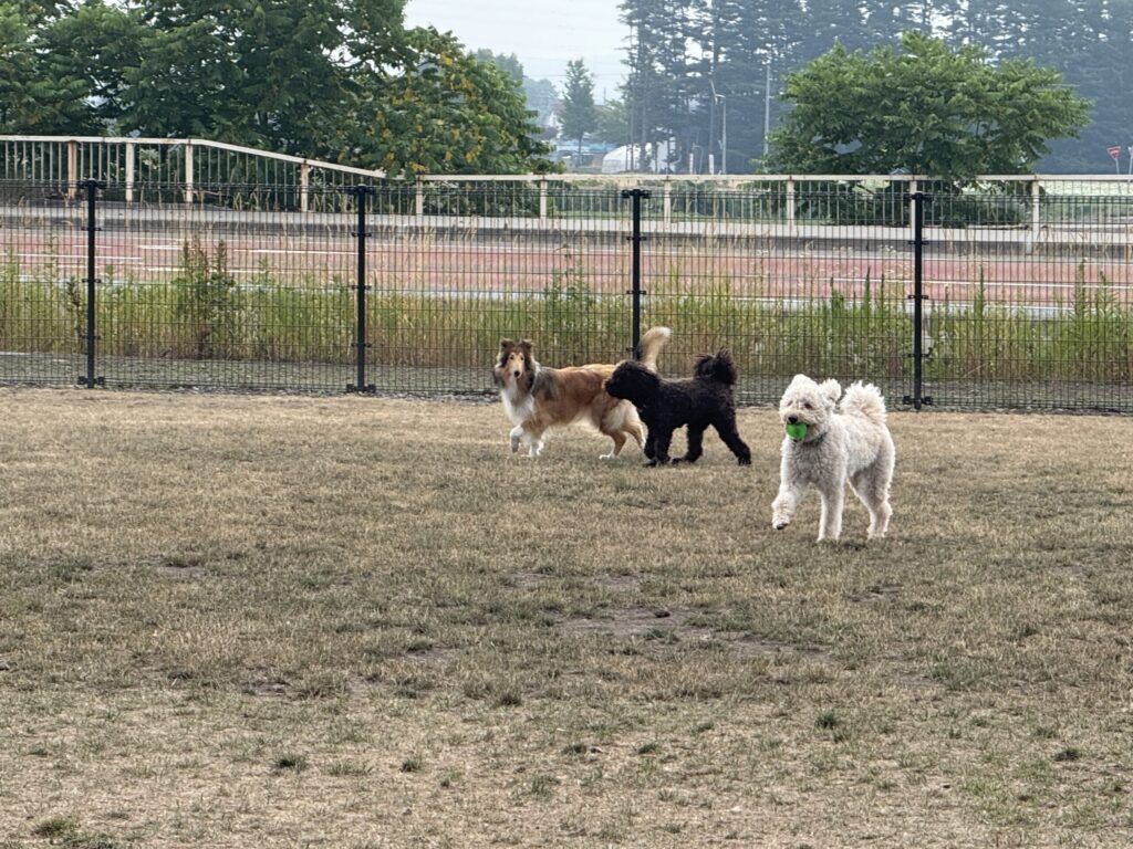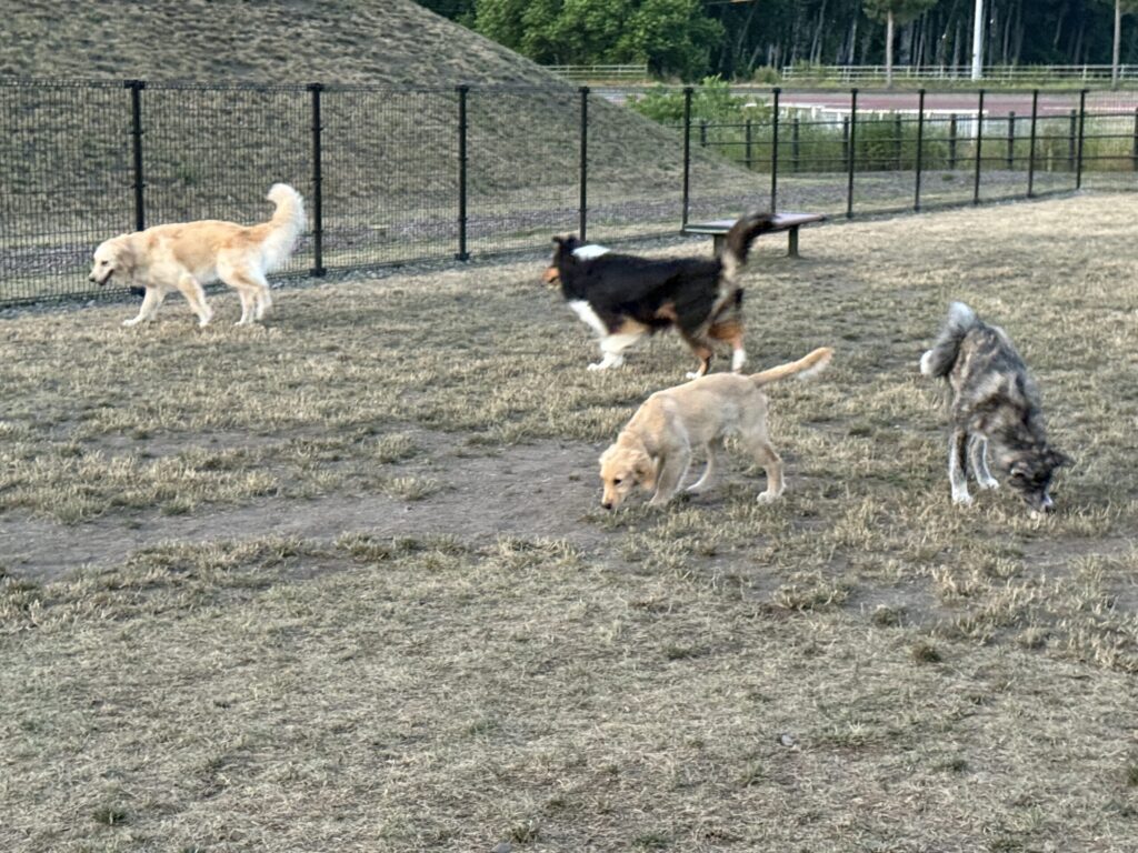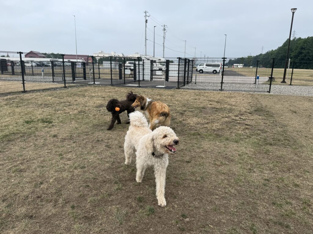 まずはドッグランで朝のお散歩。