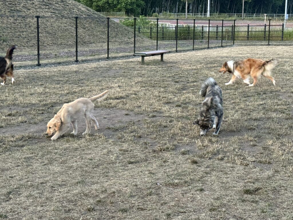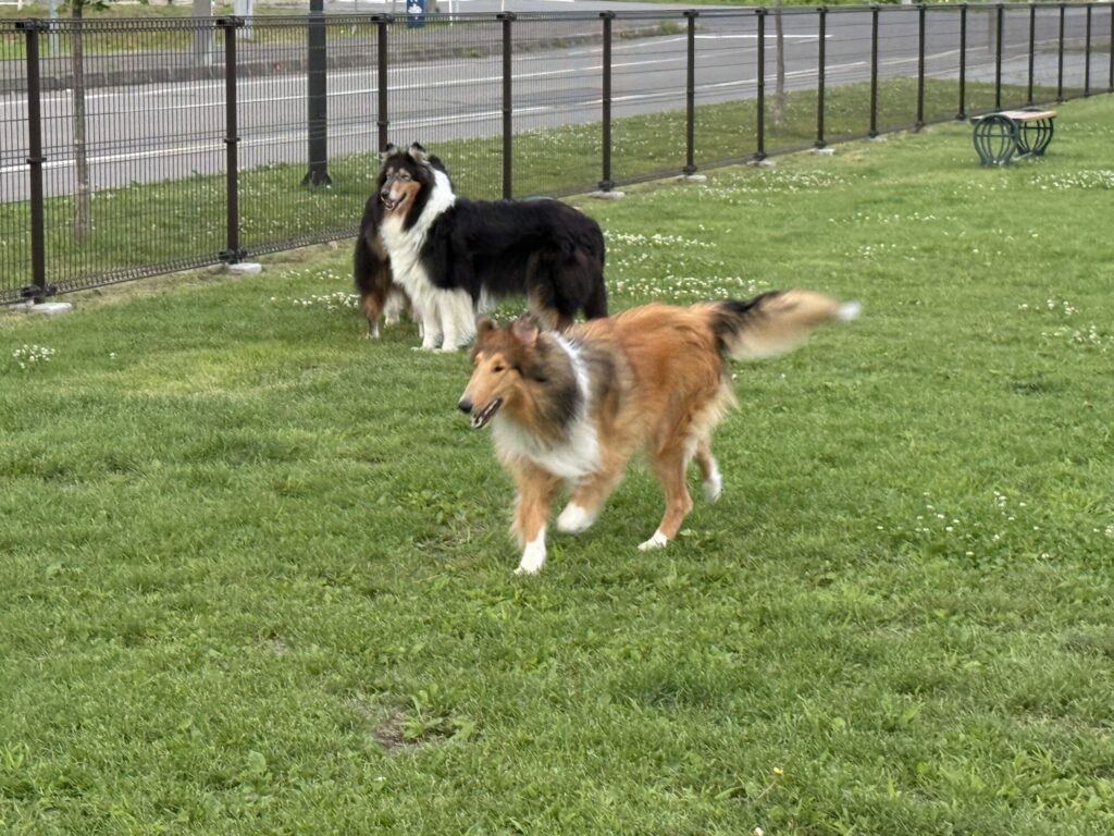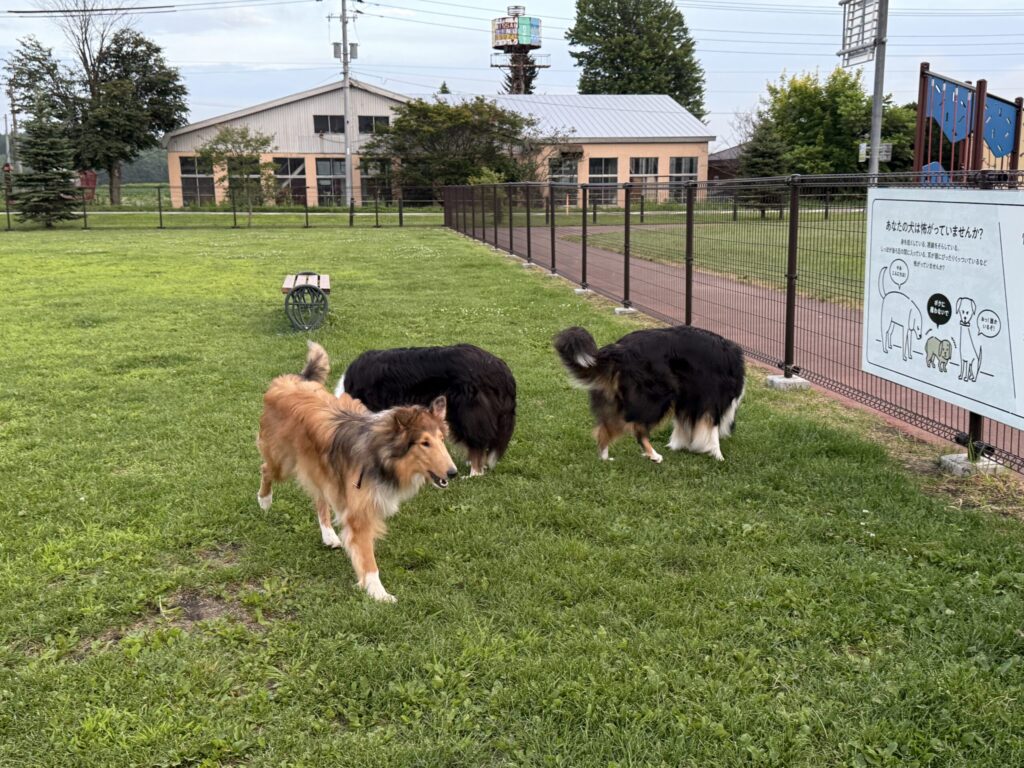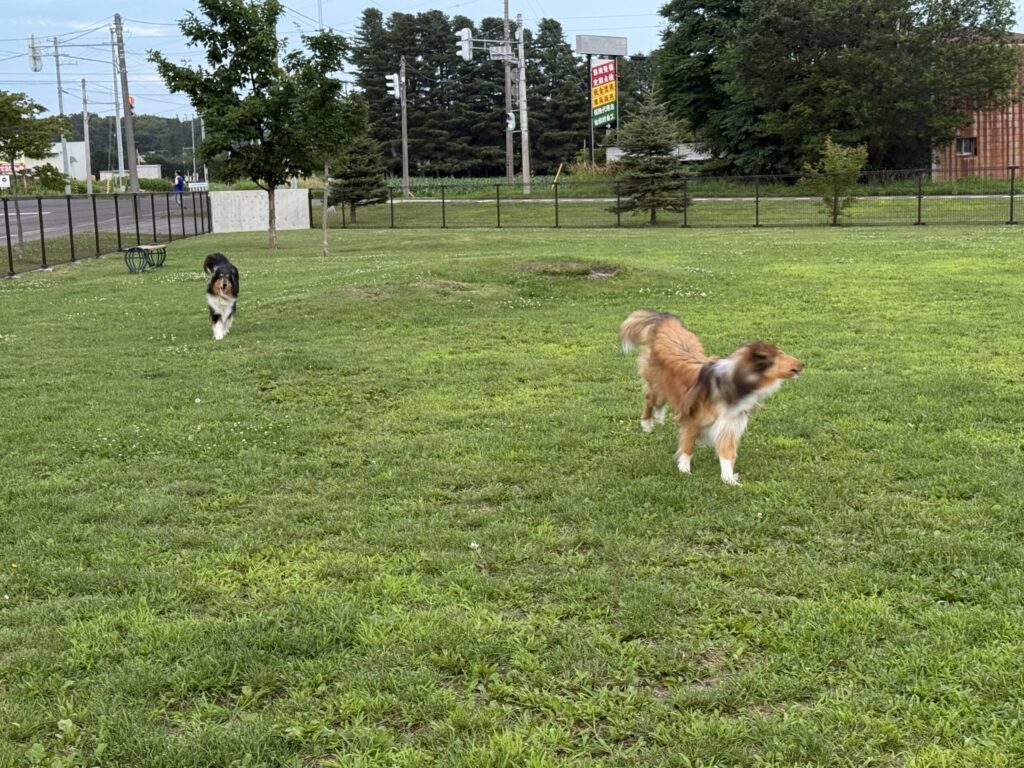 まずはドッグランで朝のお散歩。