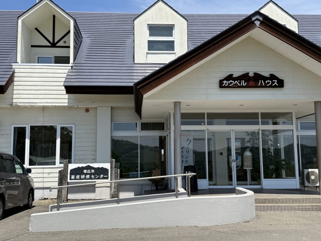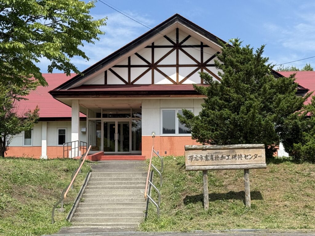 8:30に道の駅おとふけを出発。この日のメインテーマ「ソーセージ作り(体験)」のために道の駅から45分ほどの帯広市南部の山間にある「帯広畜産物加工研修センター」へ。