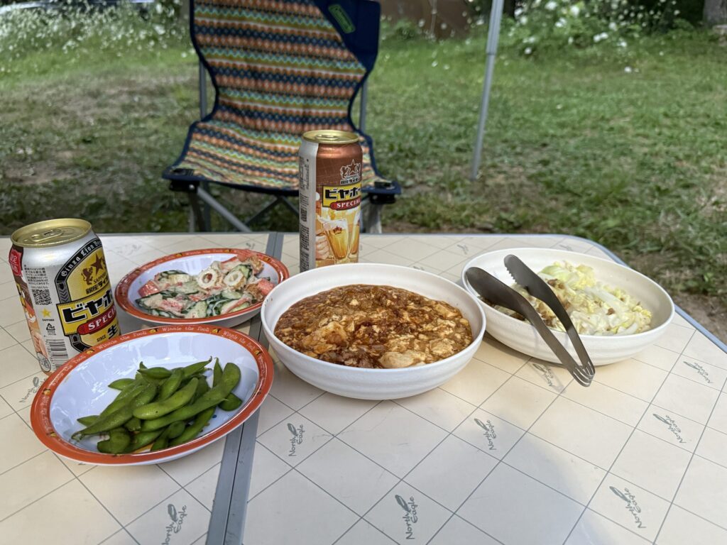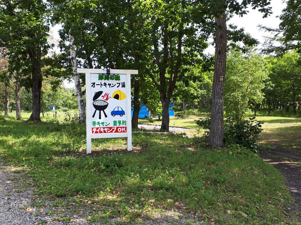 摩周の森オートキャンプ場…敷地面積は9,800坪。そのうち4,000~5,000坪がオートキャンプ場として整備されています。サイトまで車で乗り入れすることができ、炊事場やトイレも完備。併設のレストランでは名物行者ニンニク料理を味わう事が出来ます。 (残念ながら生ビールはありませんでした)。最寄りのコンビニまでは歩いて5分。