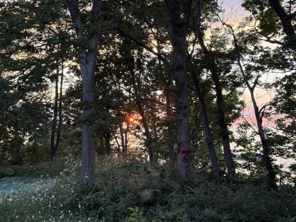 今年は木立の合間から沈む夕日が見えました。