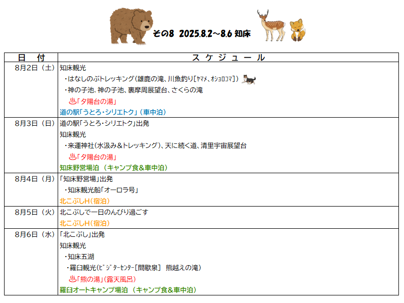 8月4日(日) 知床(観光船)~北こぶし