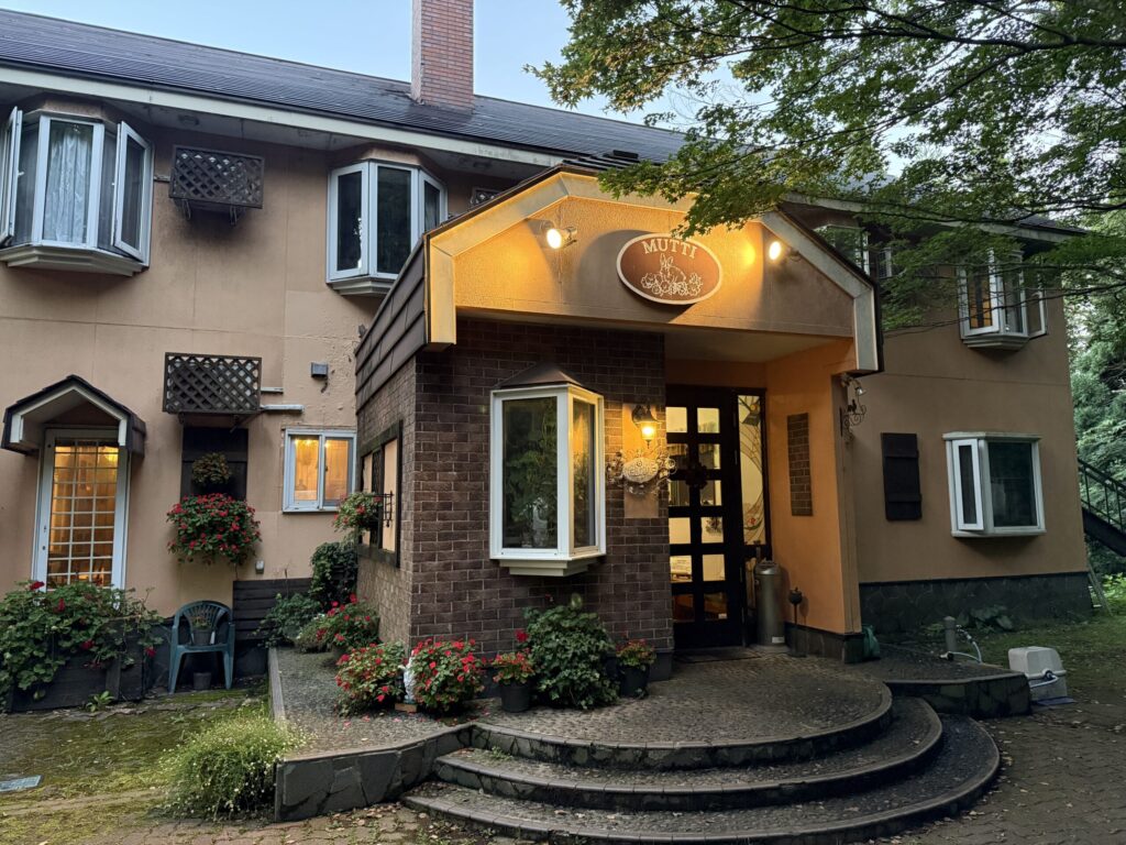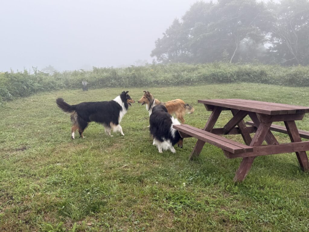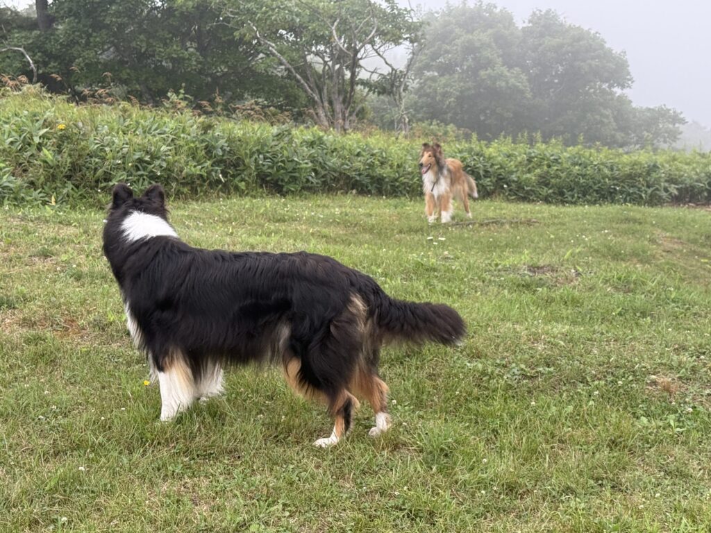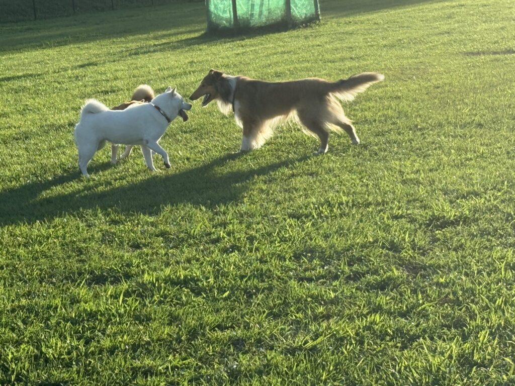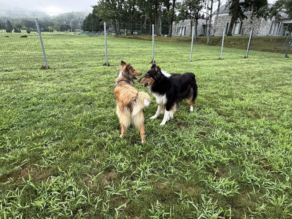 夕刻、“むってい”のある安比高原のペンション村に到着。ペンション村手前にある(ペンション村で管理していて利用者は自由に使える)広ーい原っぱでワンコをお散歩させ、ご飯もやってからチェックイン。