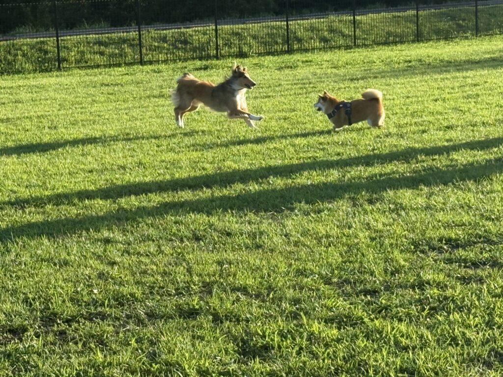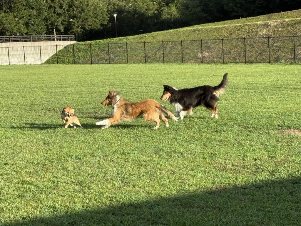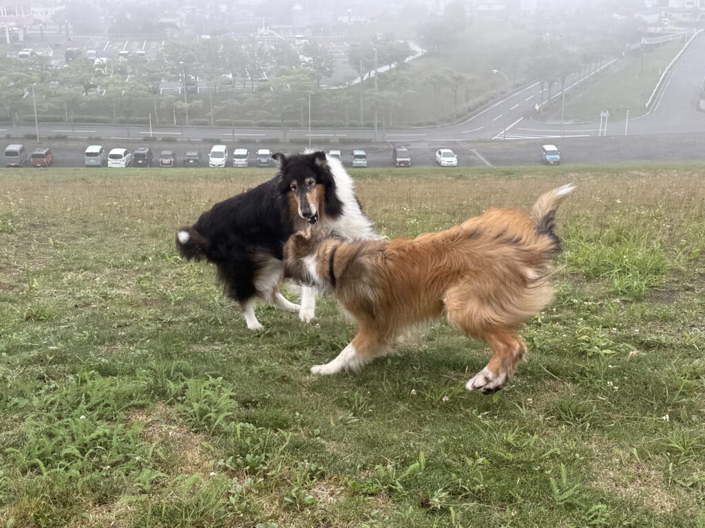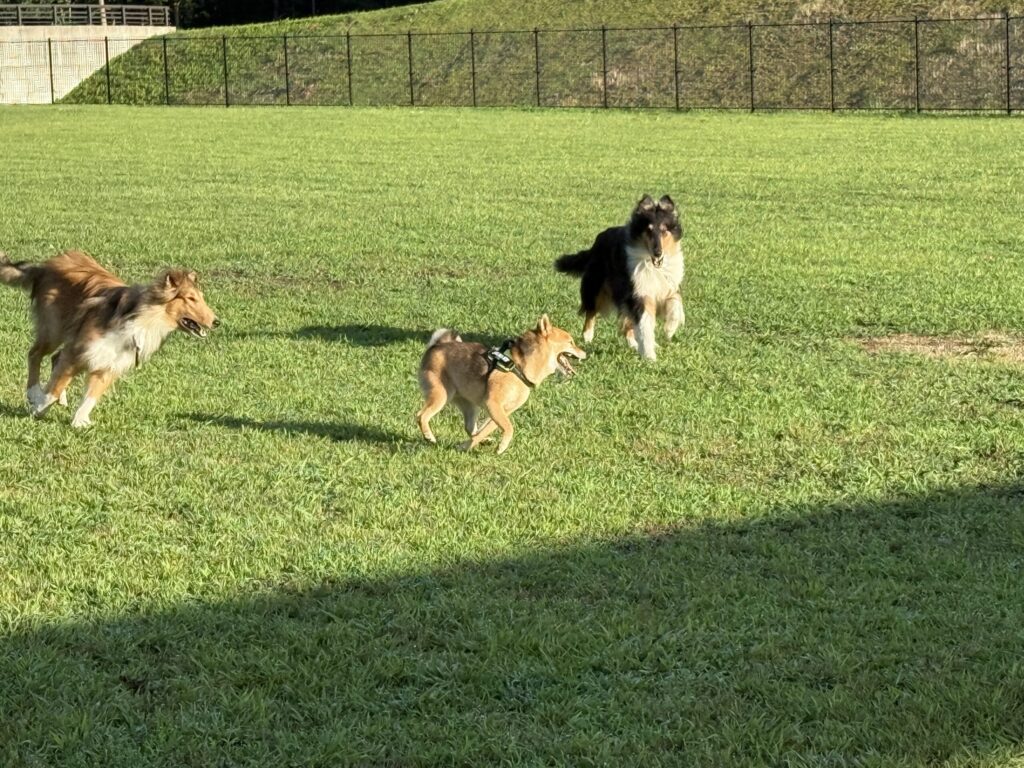 6:00にたにはま公園に移動し、ドッグランで朝のお散歩。朝のお散歩ワンコと仲良く遊べてワンコたちは、満足の様子でした。
