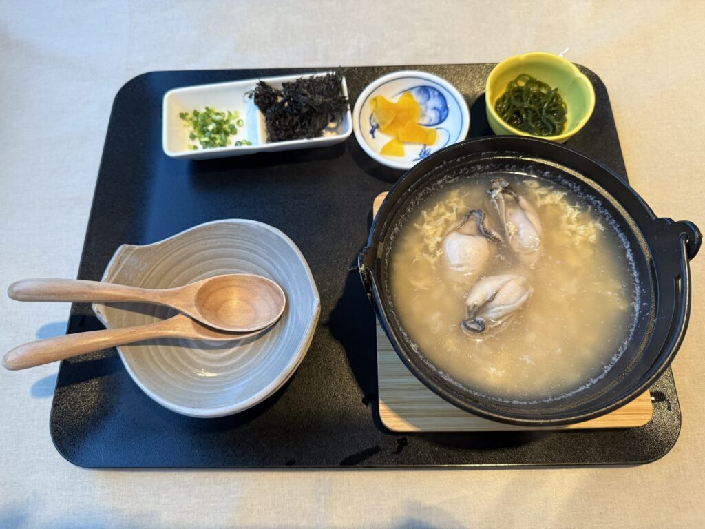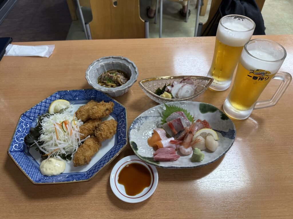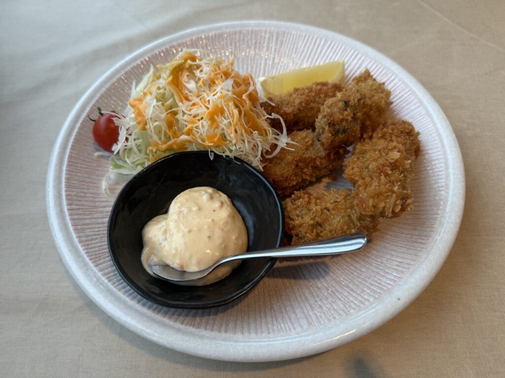 ワンコの散歩を済ませ、道の駅のレストラン「エスカル」で夕食。今年もカキ料理をおいしく頂きました。