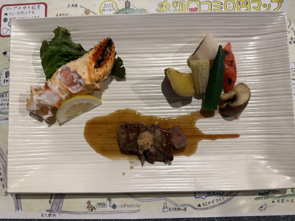 道の駅到着後、ワンコの散歩を済ませ、宿泊施設の赤いベレーで入浴と食事をとり車中泊。