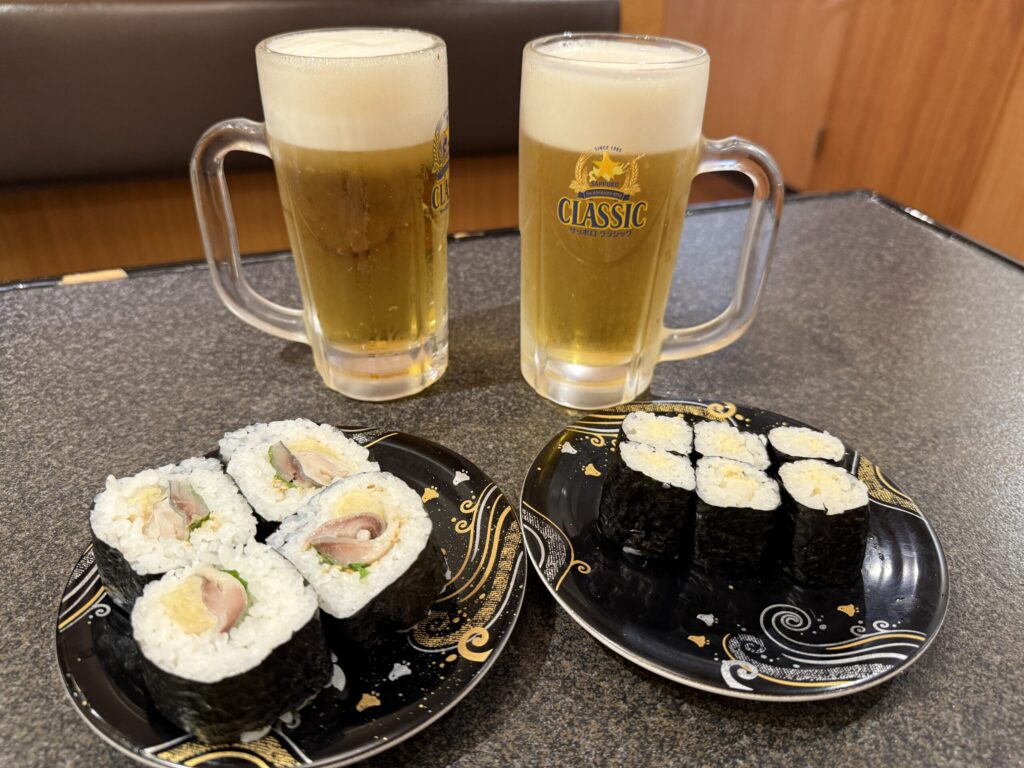 このあと釧路に移動し、「回転寿し まつりや」で昼食。