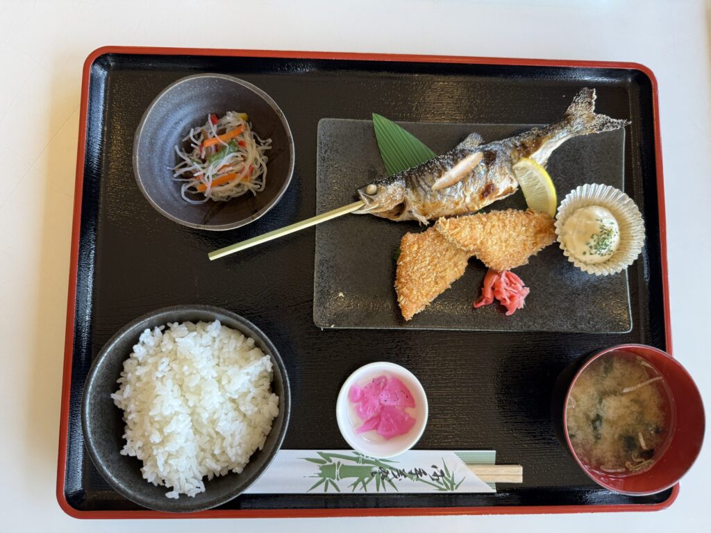 道の駅の「てんのう」「岩城」「にしめ」と、入浴施設、食事処(L.Oの時間)、ワンコの散歩スペース(我が家での第1条件)を確認しながら回り、最後の道の駅 象潟ねむの丘 で車中泊することにしました。この道の駅、お風呂はとても眺望がよく、レストランも美味しくてとても満足でした。