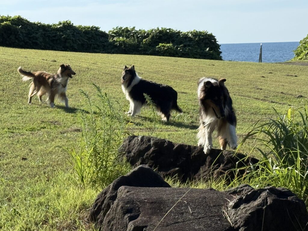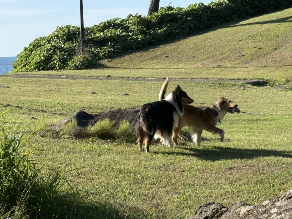 肝心のお散歩スペースですが、ここはゆったり散歩できる場所がふんだんにあり、海岸での散歩も出来るので「〇」でした。