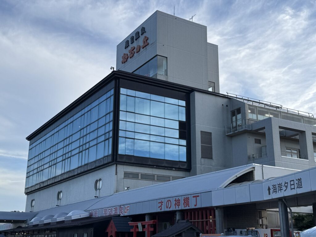 大浴場、レストラン、鮮魚売場、ホテルなどがあり、目の前に迫る日本海の眺めは素晴らしく、天気がいいと日本海に沈む夕日を見ながらがら露天風呂に入る事が出来ます。