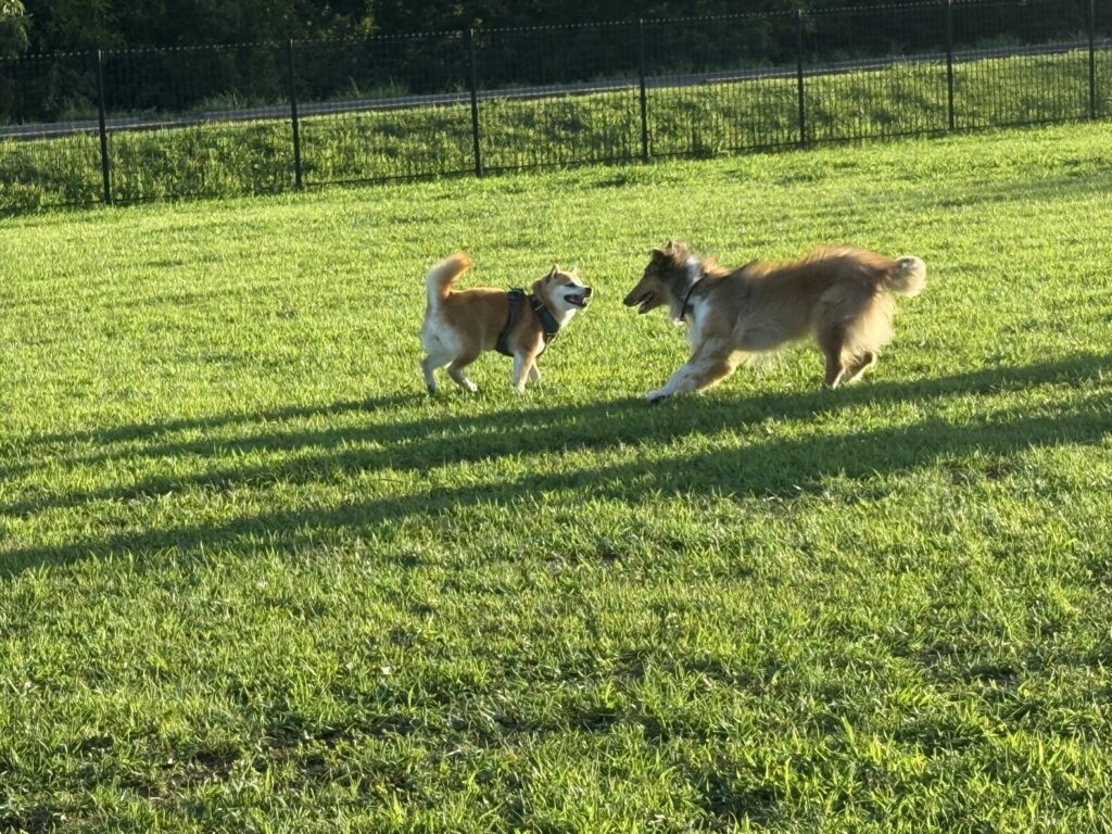 朝の散歩は昨日も行った近くの原っぱ。ワンコのびのび です。