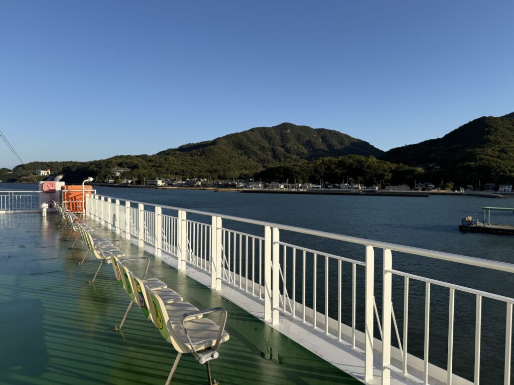 7:30発のフェリーに乗船し、予定通り8:35に到着。