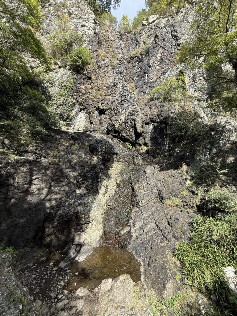 滝とは名ばかりで、岩肌を湿らす程度の水がチョロチョロと流れているだけ..!!