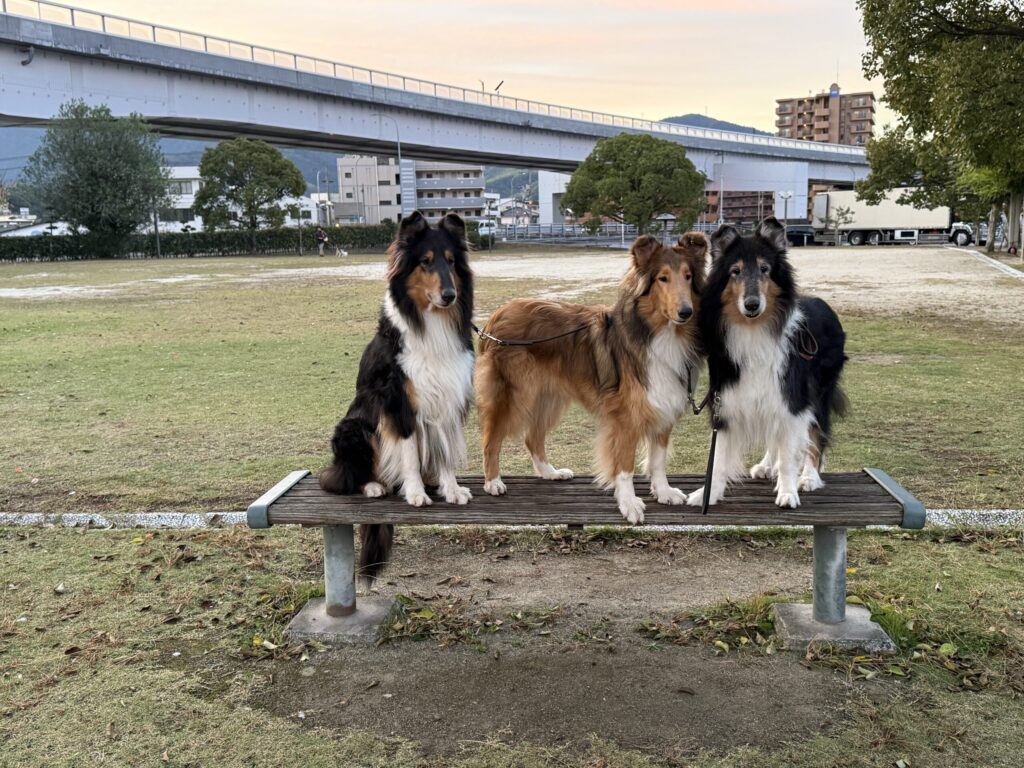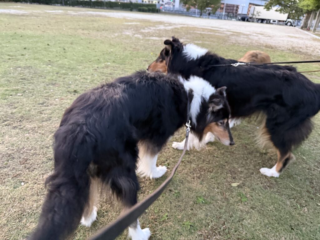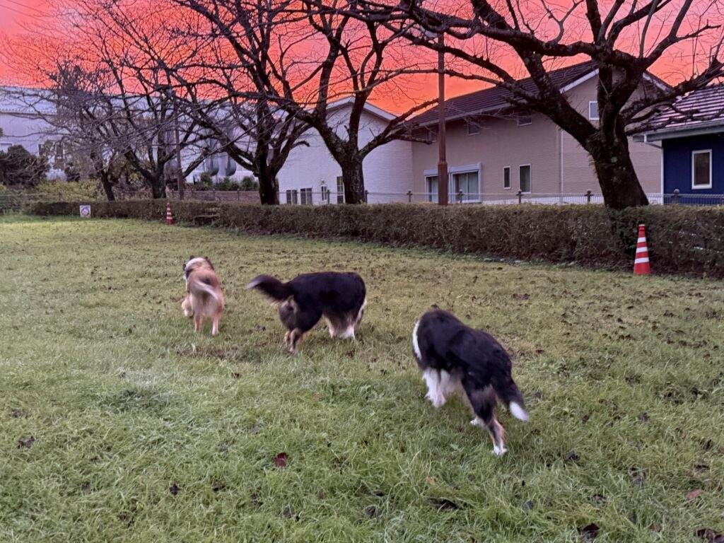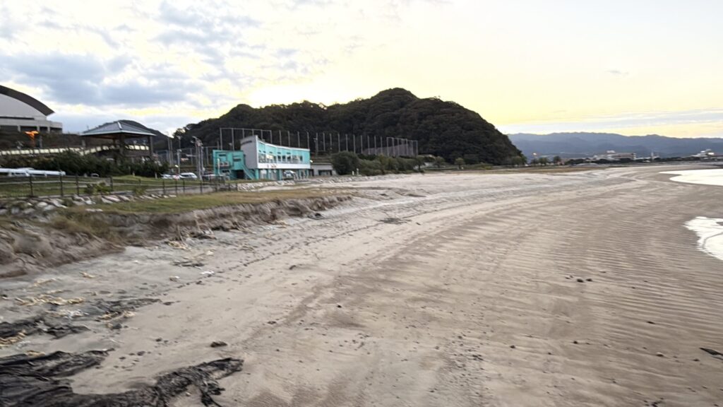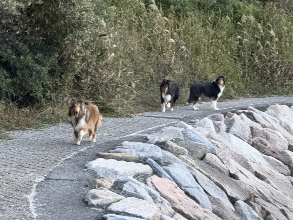 朝5:30 まだ薄暗い中、道の駅の目の前に広がる大浦海岸でゆっくりワンコのお散歩。