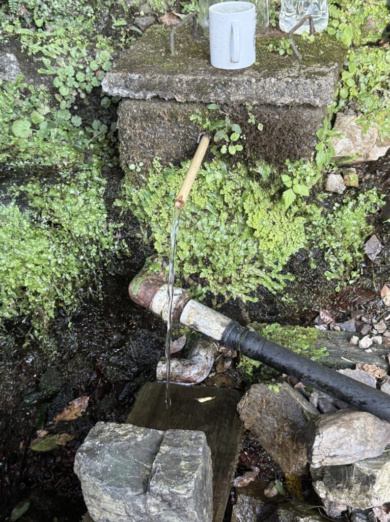 源流地点まで徒歩25分とある看板のところからミニハイキング。長老のガウディはお留守番したがっていたけど、とりあえず連れて行き、何とか頑張ってみんなで源流地点まで到達する事が出来ました。