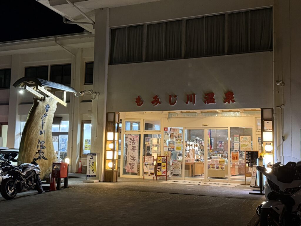 滝見物を終えた後、この日の宿泊地、道の駅 もみじ川温泉に向かいました。18:00過ぎに道の駅に到着し、早速入浴と夕食。