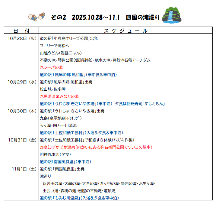 11月1日(木) 道の駅南国風良里~徳島の滝巡り~道の駅もみじ川温泉