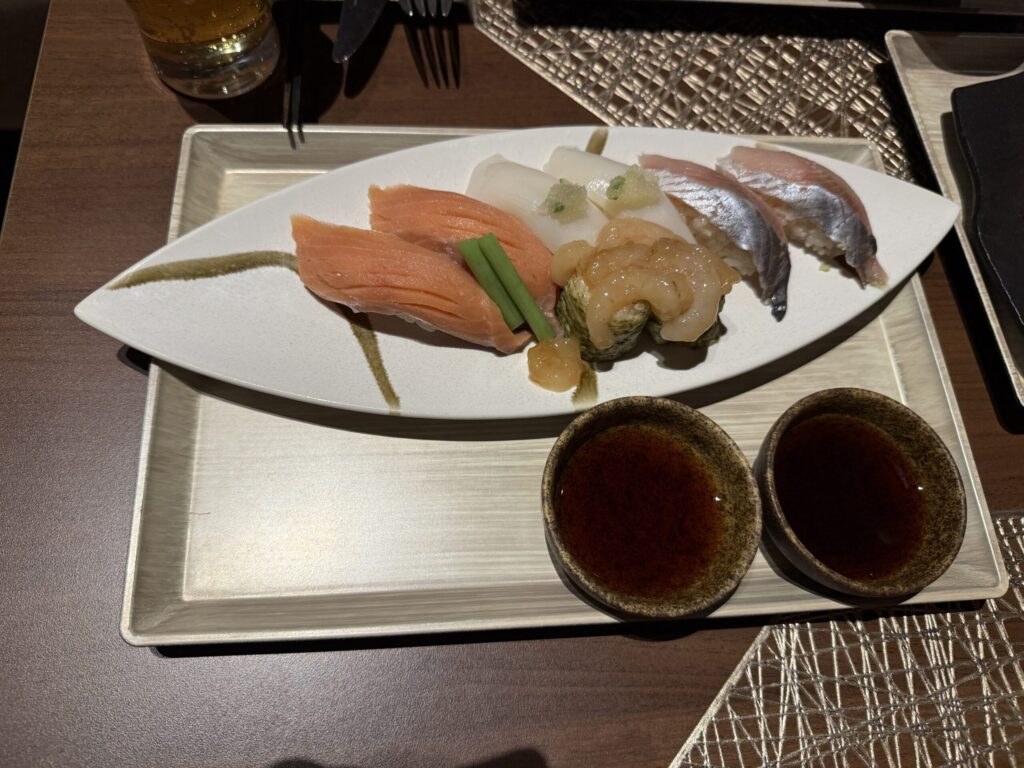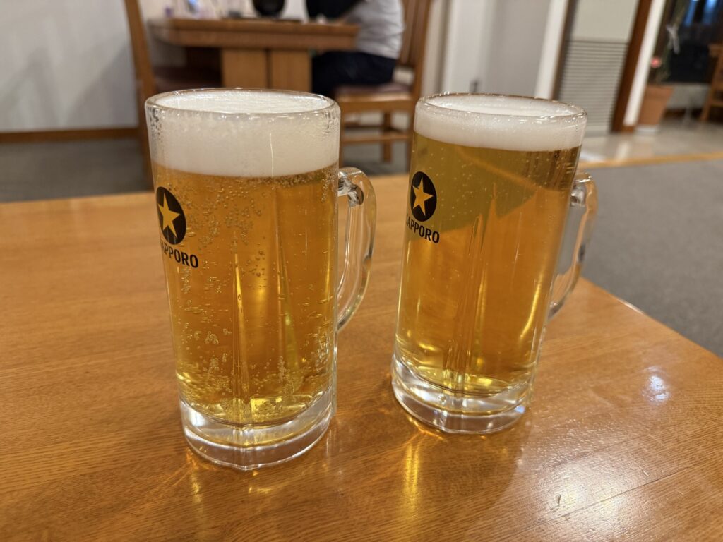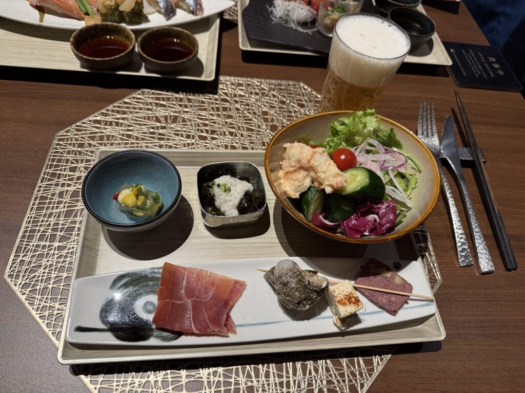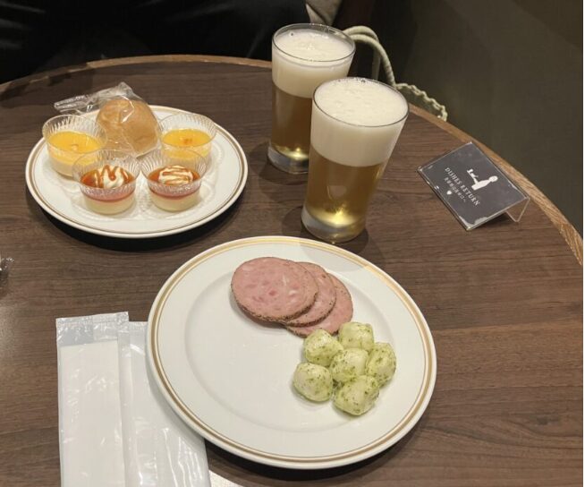 お風呂から上がったら急に疲れが出てきて、夕食はお部屋でジンギスカンの予定でしたが、それは明日に日延べしてラウンジでビールを飲みながら適当につまみをつまんで夕食にしてしまいました。