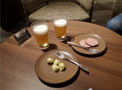 荷物の運び込みに結構時間がかかって少々疲れたので、とりあえずラウンジで乾杯🍻