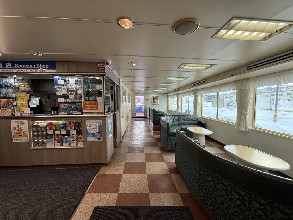 8:00過ぎに流氷船の乗船手続きを済ませて、8:30過ぎから乗船待ちで並び始めました。この時はまだ並んでいる観光客もちらほらでしたが、あっという間に乗船待ちの観光客の列が出来て道の駅内はごった返し状態となりました。予め案内所で確認した時は「9:00くらいから乗船手続きが始まるので、その頃に来てもらえればいい」との事でしたが、念の為に早めに行って正解でした。