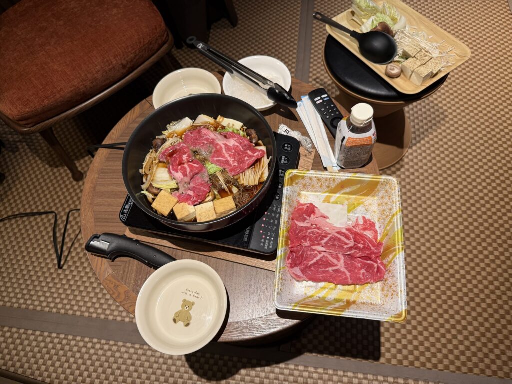 この後私達は入浴。今日は夕食無しで予約しているので、部屋に戻って夕食(豪勢にすき焼き(^^♪)