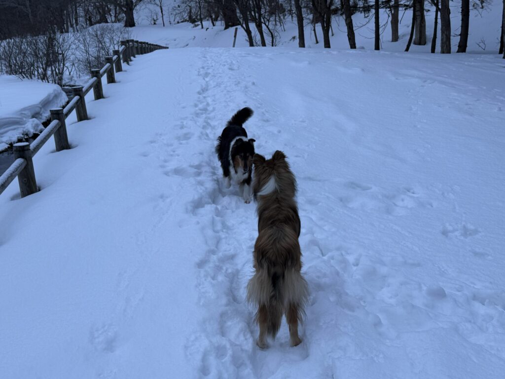 一服した後は車で待たせていたワンコの散歩にいつも知床うとろに来た時に行くペレケ川河岸公園へ。雪が心配でしたが、スノーブーツを履いていったので全然問題ありませんでした。ワンコも大はしゃぎ。