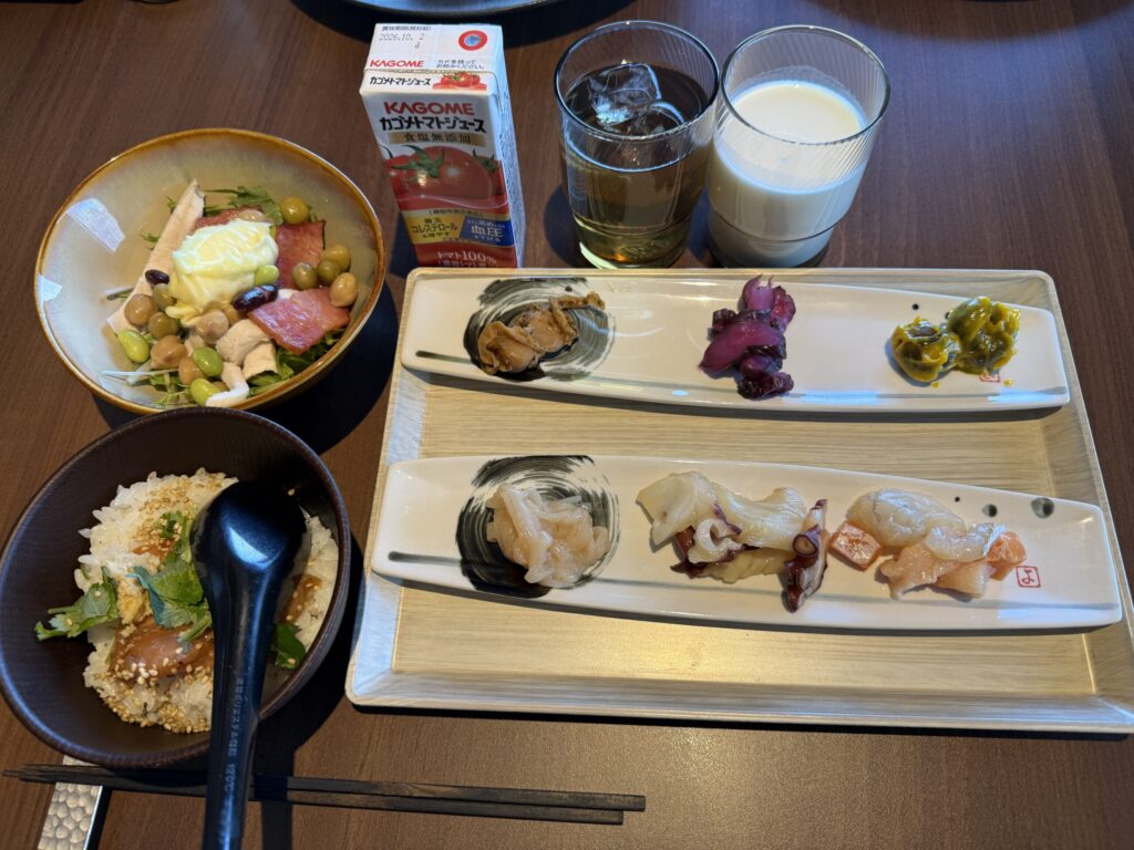 今夜の夕食はホテルのバイキング。いろいろ物色してほぼ全メニュー制覇☺