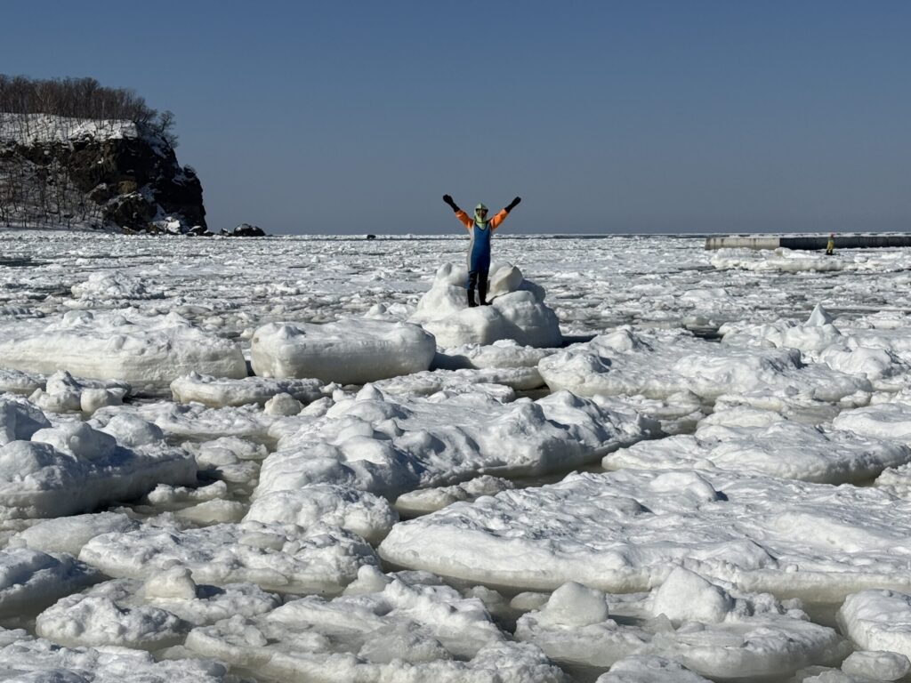知床では流氷の上を歩いたり、流氷の中に浸かったりできる「流氷ウォーク」が楽しみです。