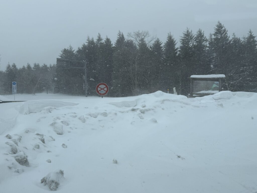 夏には駐車スペースになっている場所は雪で埋もれていて通行止めになっていました。