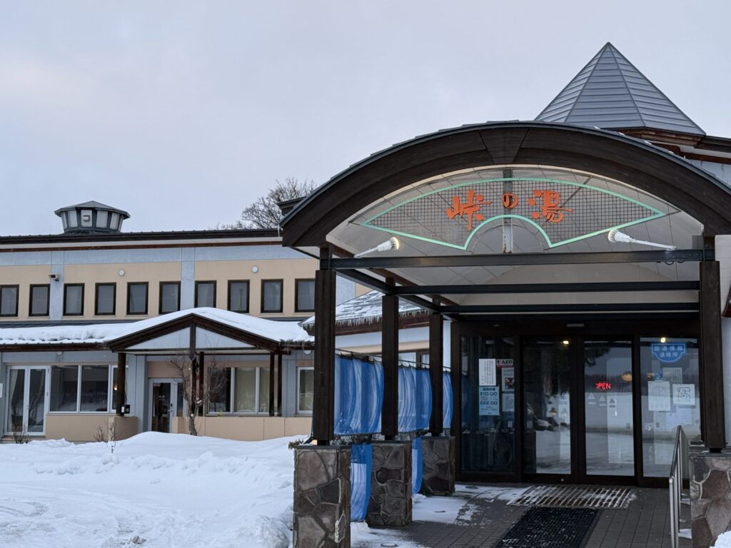 峠の湯びほろでは先ほどの峠での吹雪が嘘のように晴れ間ものぞく穏やかな状況。